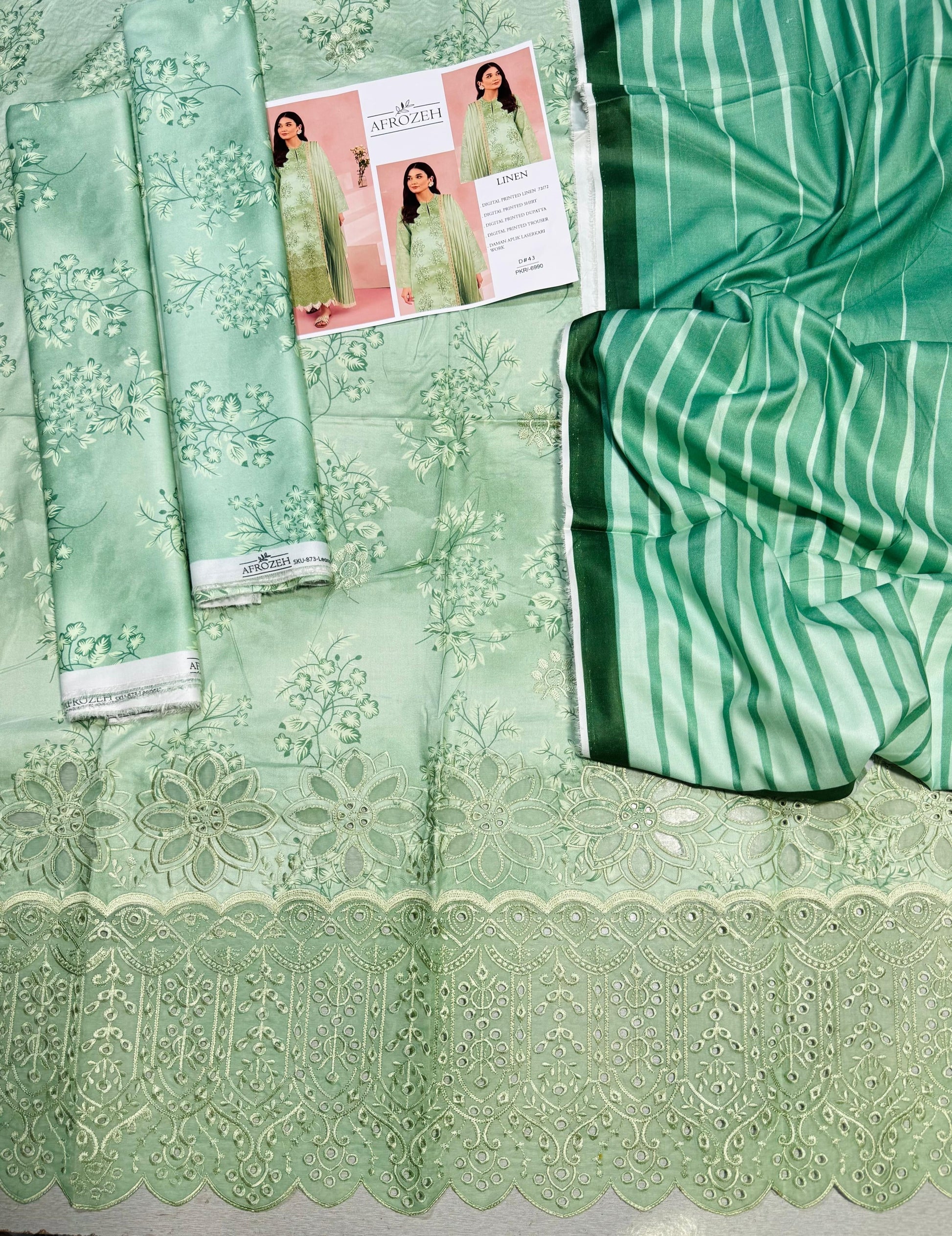 AFROZEH LUXE APLIC DAMAN EMBROIDERED+PRINTED UNSTICHED LINEN 3pc