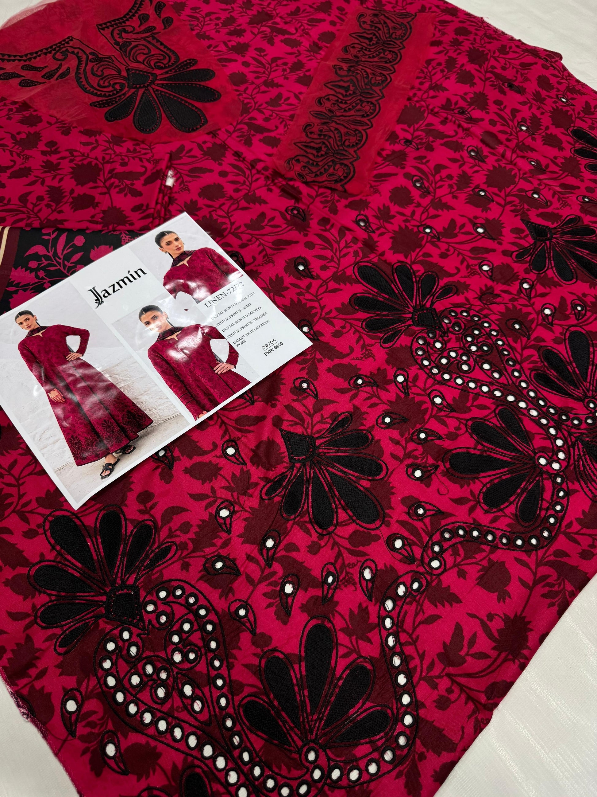 JAZMINE LUXE DAMAN BORING PRINTED-EMBROIDERED UNSTICHED LINEN 3PC (SL-7049)